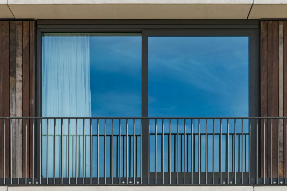 Het esthetische RT 72-profiel van Kawneer heeft een diepte van slechts 72 mm. Dankzij de slanke raamstijlen kan men zo optimaal profiteren van het binnenvallende daglicht. Samen met de goede akoestische eigenschappen van de Renson Invisivent NL zorgt dit voor een gezonde leef- en woonomgeving.